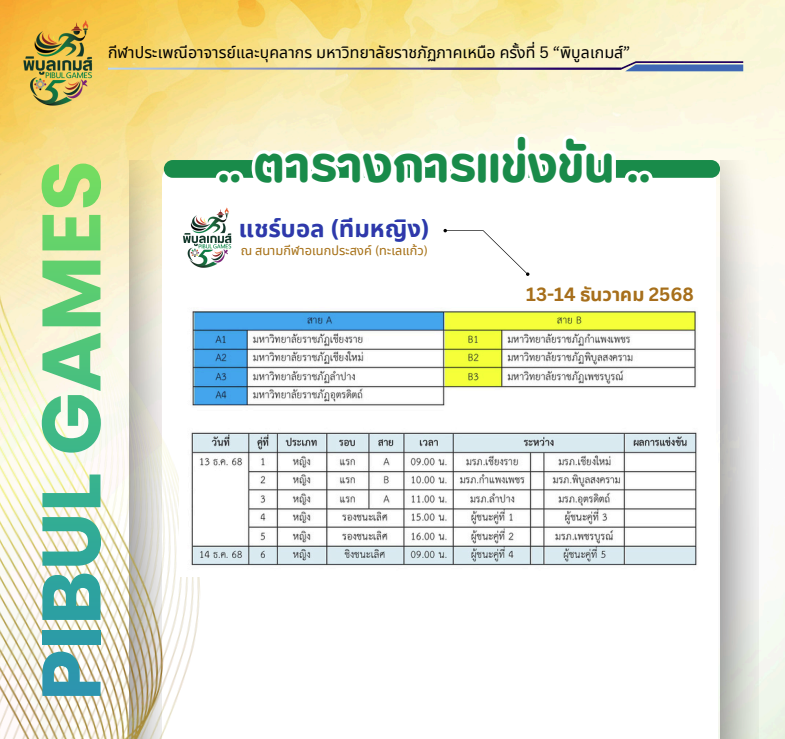 ข้อมูลการแข่งขันกีฬาแชร์บอล
